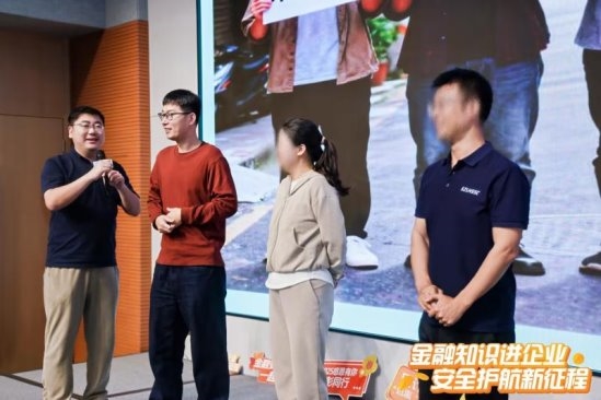 (工作人员为企业员工讲解金融知识)